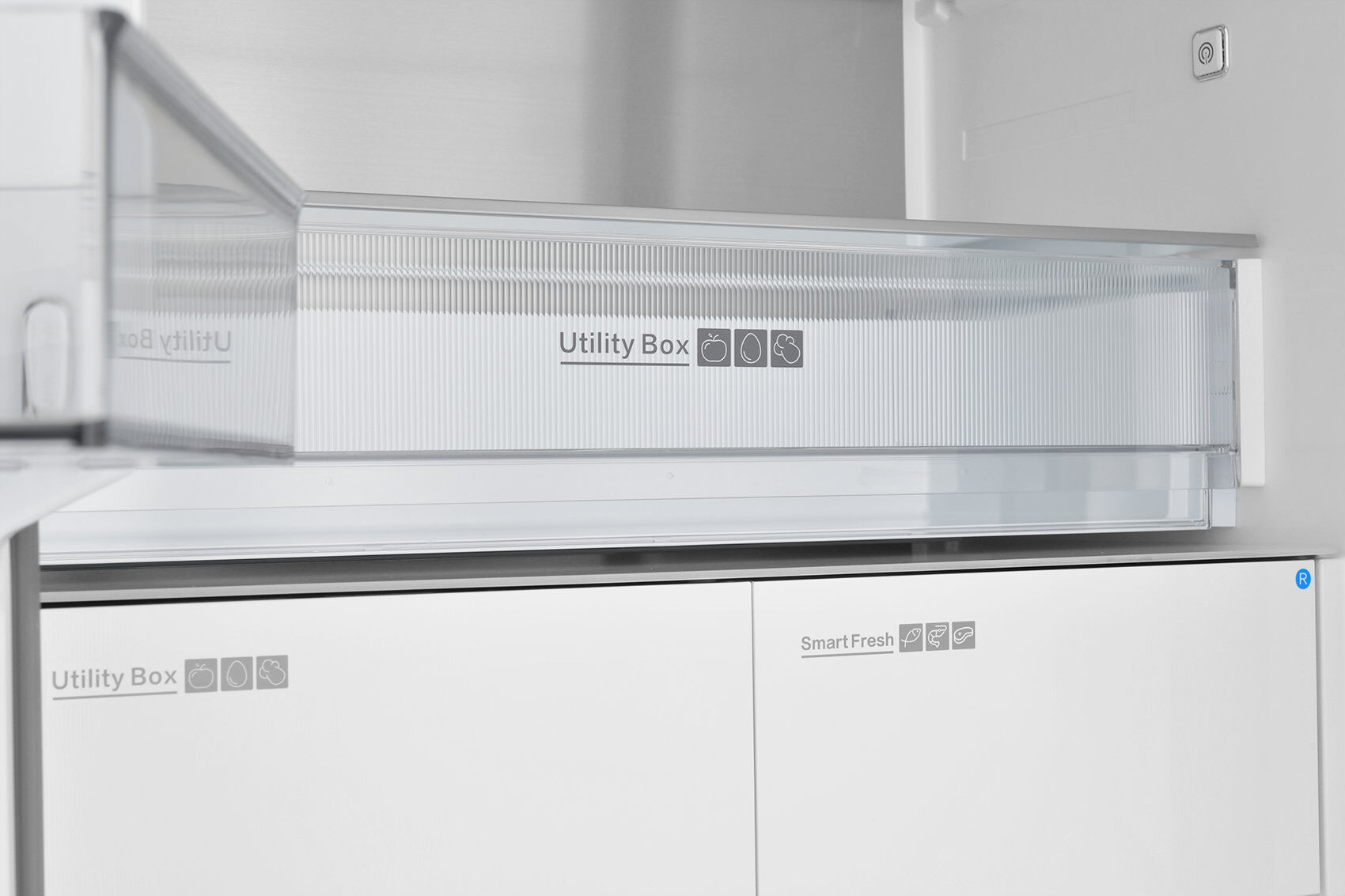 - Дизайн French Door с 4 дверцами – премиальный формат и максимальное удобство – 4 отдельные дверцы в формате French Door обеспечивают удобный доступ к продуктам. Раздельное открывание секций экономит холод и электроэнергию.