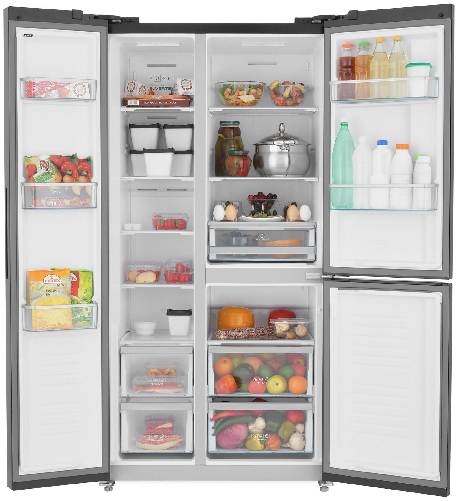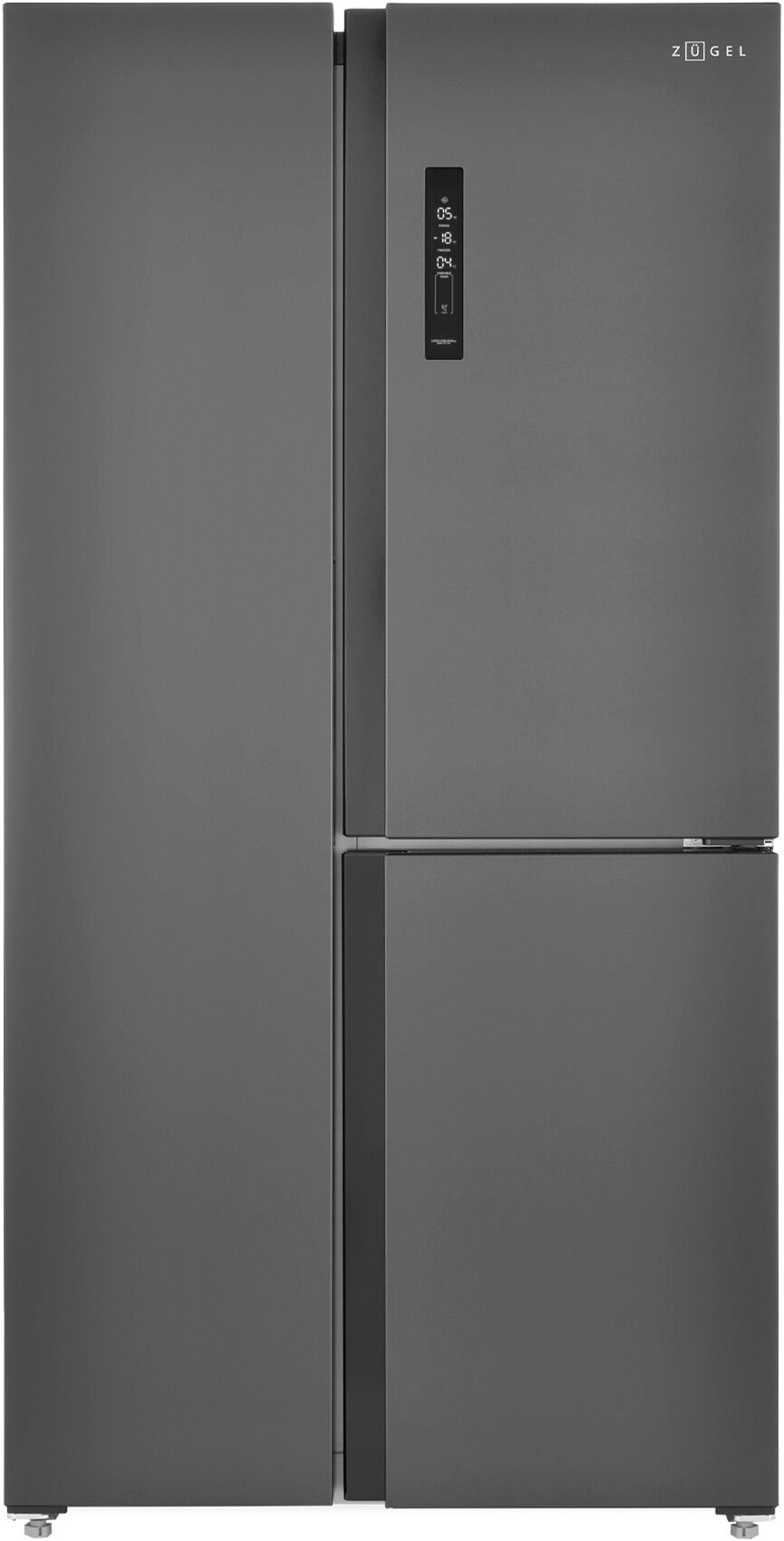 Многокамерный холодильник Zugel ZRTD459XB – Side-by-Side, универсальная камера 122 л, чёрная сталь и мощность замораживания 10 кг/сутки