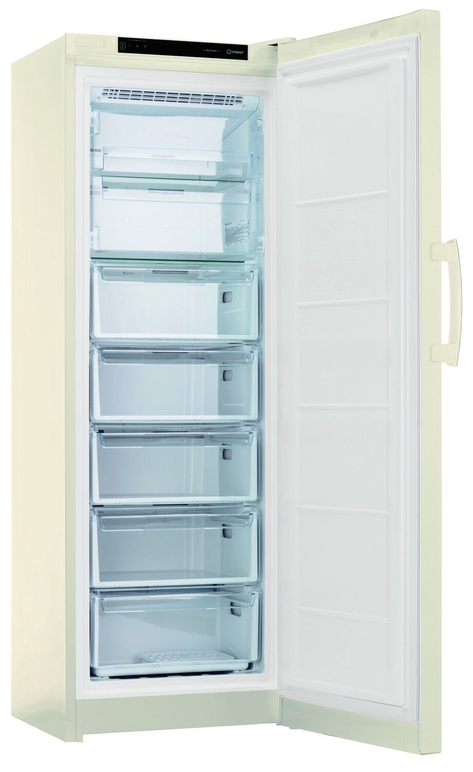 Морозильный шкаф Indesit DFZ 5175 E – No Frost, электронный дисплей и нежный бежевый цвет
