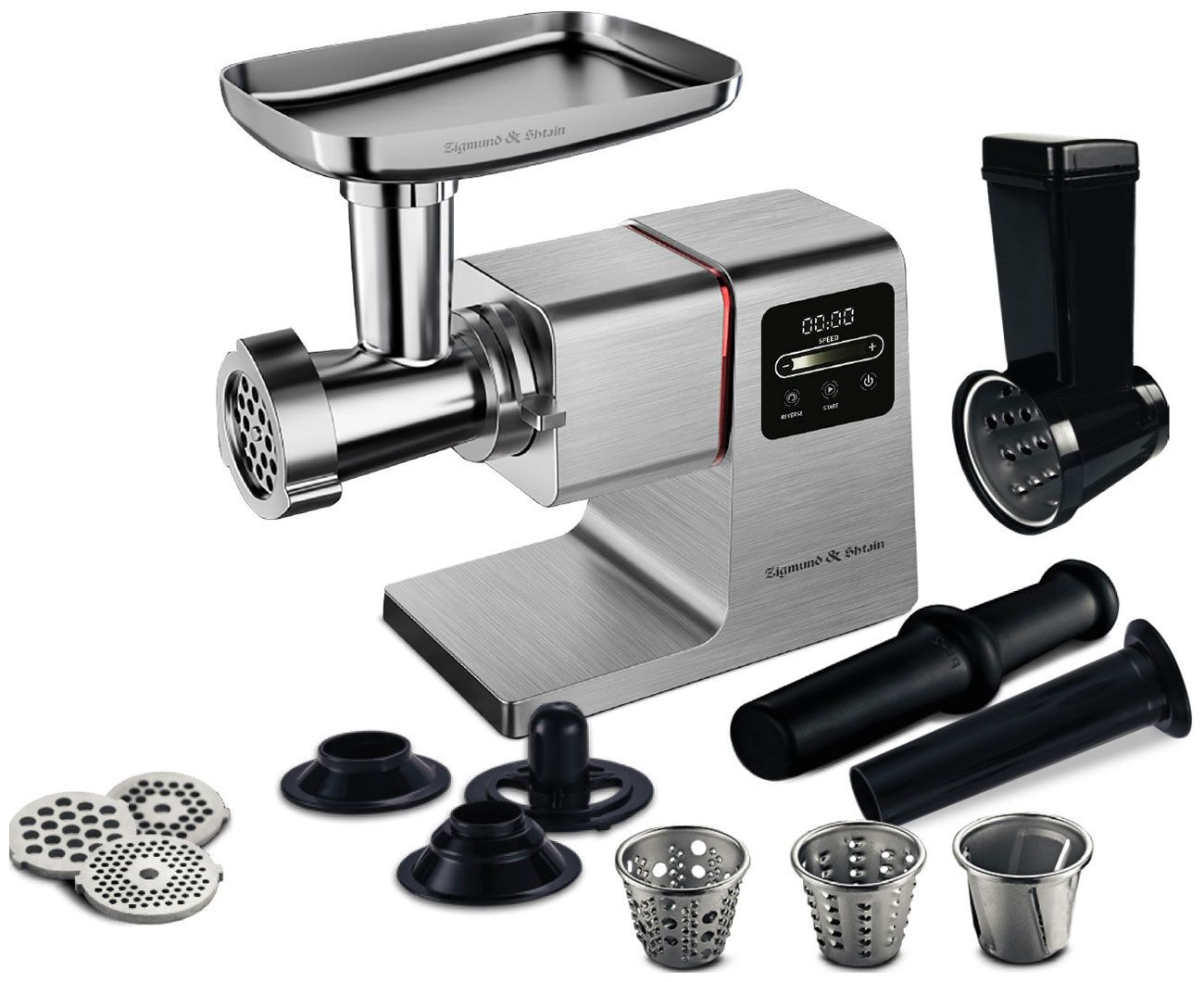 Мясорубка Zigmund & Shtain ZMG-050 – универсальная система 8-в-1 с мощностью 2700 Вт и производительностью 2.7 кг/мин