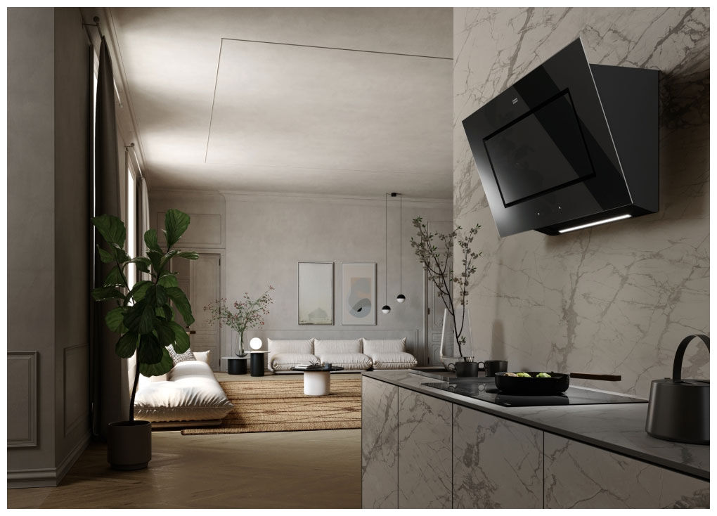 - Уровень шума от 41 дБ – один из самых низких показателей в классе. На минимальной скорости вытяжка работает практически бесшумно, не мешая отдыху, сну или общению на кухне.