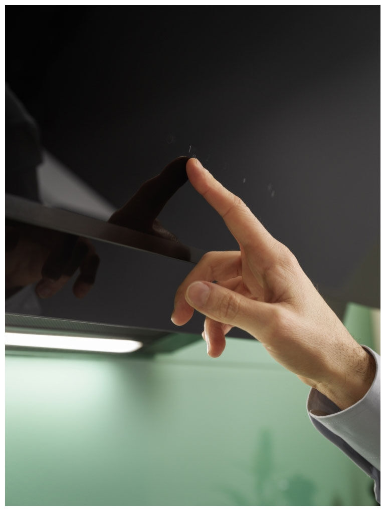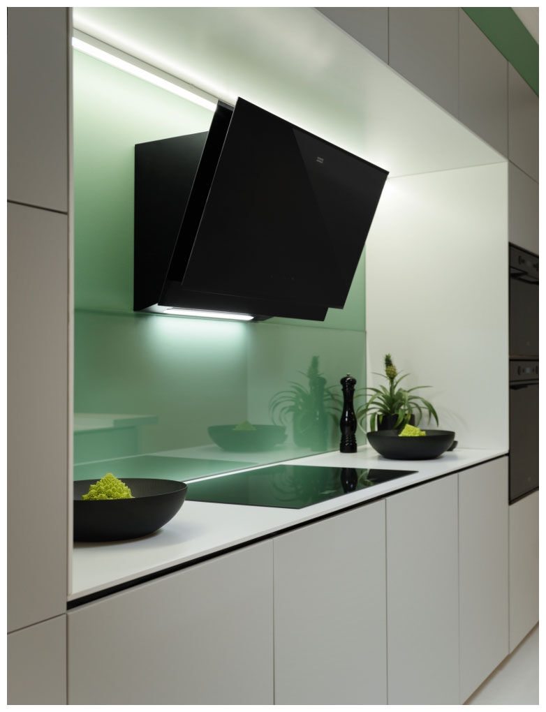 - Ширина 89.8 см – идеальное перекрытие для варочных панелей шириной 70–80 см. Максимальный захват воздуха по всей рабочей поверхности.