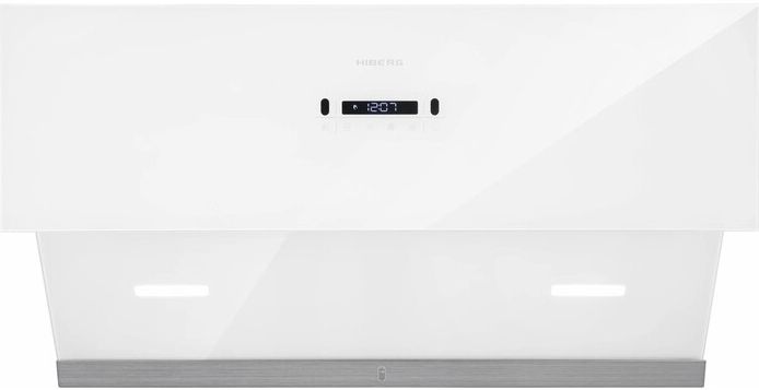 Наклонная вытяжка HIBERG VM 90131 W в светлом цвете с фасадом из закаленного стекла сочетает лаконичный дизайн и передовые технологии. Конструкция создает дополнительное пространство над варочной панелью, а гладкое стеклянное покрытие легко поддерживать в чистоте.