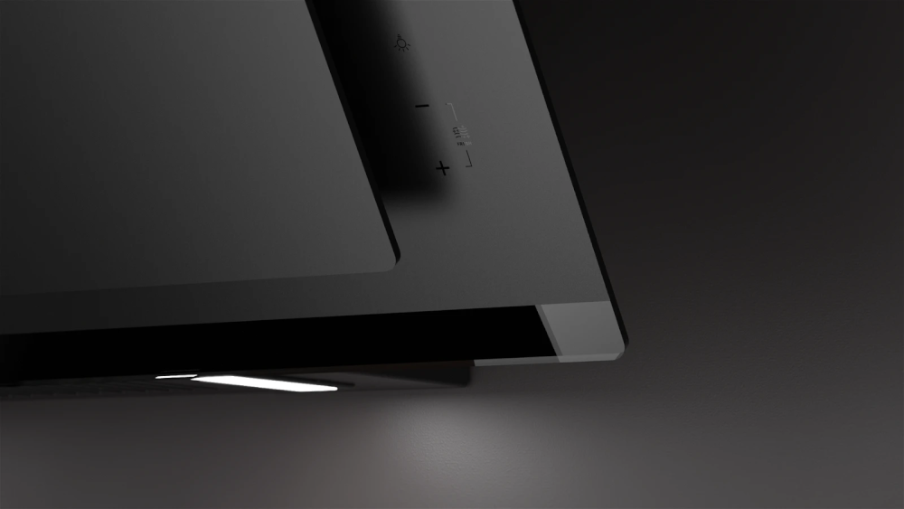 Откидная матовая стеклянная панель – эргономичный наклонный дизайн улучшает обзор, а откидывающаяся панель увеличивает рабочую зону всасывания, совмещая сдержанную эстетику матового черного стекла с максимальной функциональностью.
