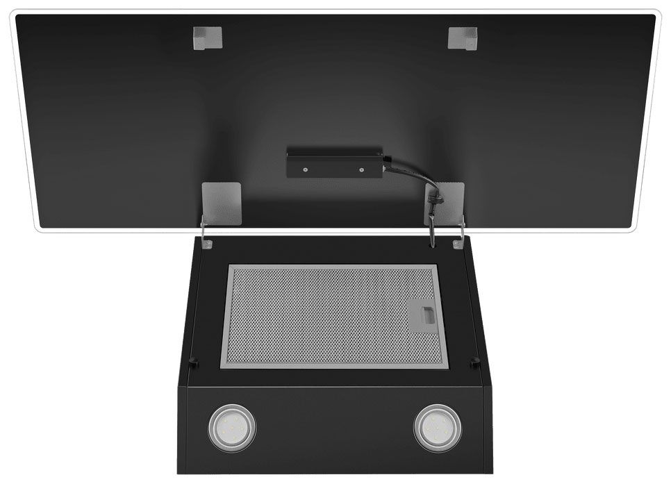 - Простота обслуживания – алюминиевый жироулавливающий фильтр легко снимается и разбирается для тщательной очистки, а гладкое стекло фасада протирается без усилий.