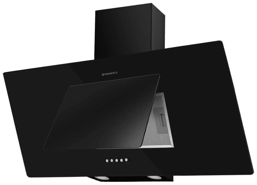 Наклонная вытяжка Maunfeld Tower 90 — широкая черная модель с подъемным глянцевым стеклом