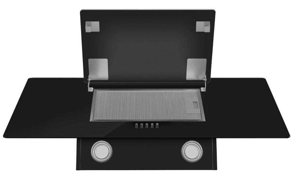 - Стильный и практичный дизайн — подъемное черное стекло скрывает фильтр, создавая лаконичную гладкую поверхность.