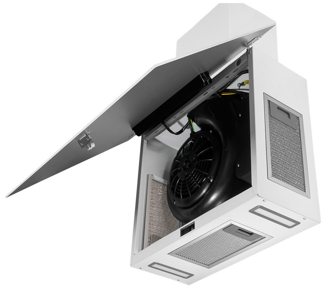 - Сверхтонкий корпус (18.6 см) – компактная глубина позволяет установить вытяжку практически в любом месте, не загромождая пространство, и придаёт ей изящный, современный вид.