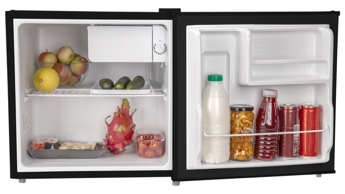 - Компактные габариты – минимальная высота (~49 см) и глубина (~45 см) позволяют установить холодильник в ограниченное пространство: под столешницу, в нишу или использовать как мобильный вариант.