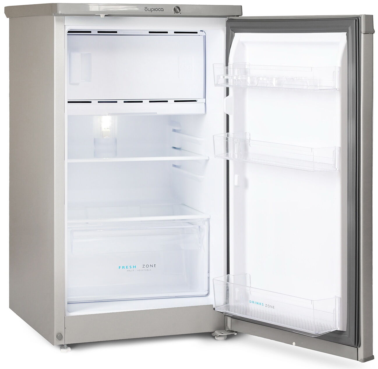 Однокамерный холодильник Бирюса M408 – цвет металлик, 115 литров, морозилка 27 л и класс A+
