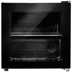 - Стильный дизайн – черный корпус со стеклянной дверцей
