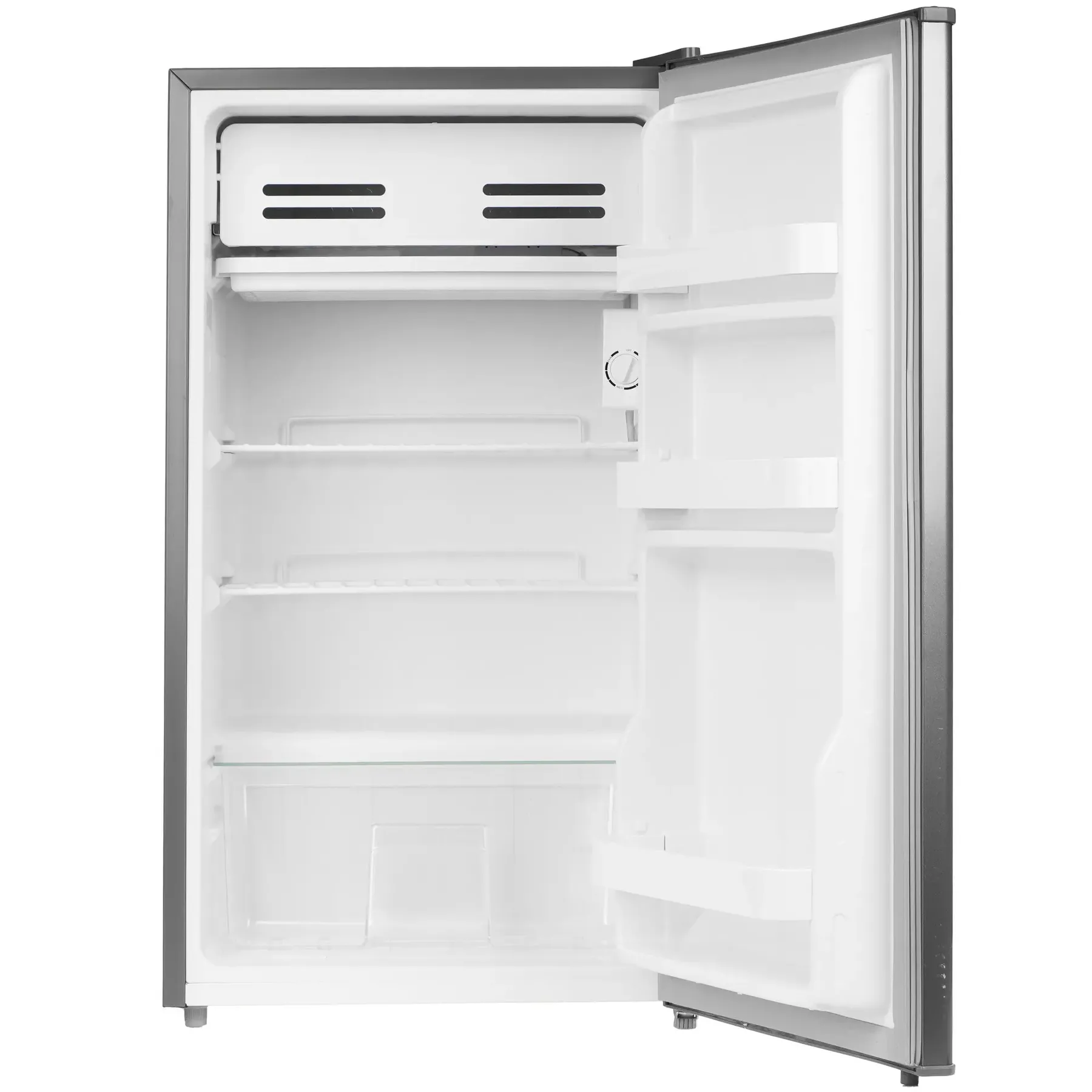 Компактный холодильник Hyundai CO1003 – вместительность 94 л в элегантном серебристом корпусе