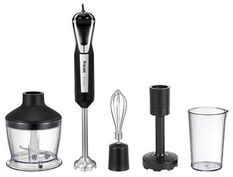 - Насадки: блендер, измельчитель, венчик для взбивания, насадка для пюре