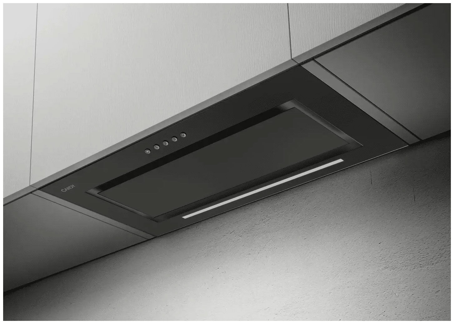 Полновстраиваемая вытяжка Candy CVXBI63MGBB – чёрное стекло, производительность 600 м³/ч и тихая работа
