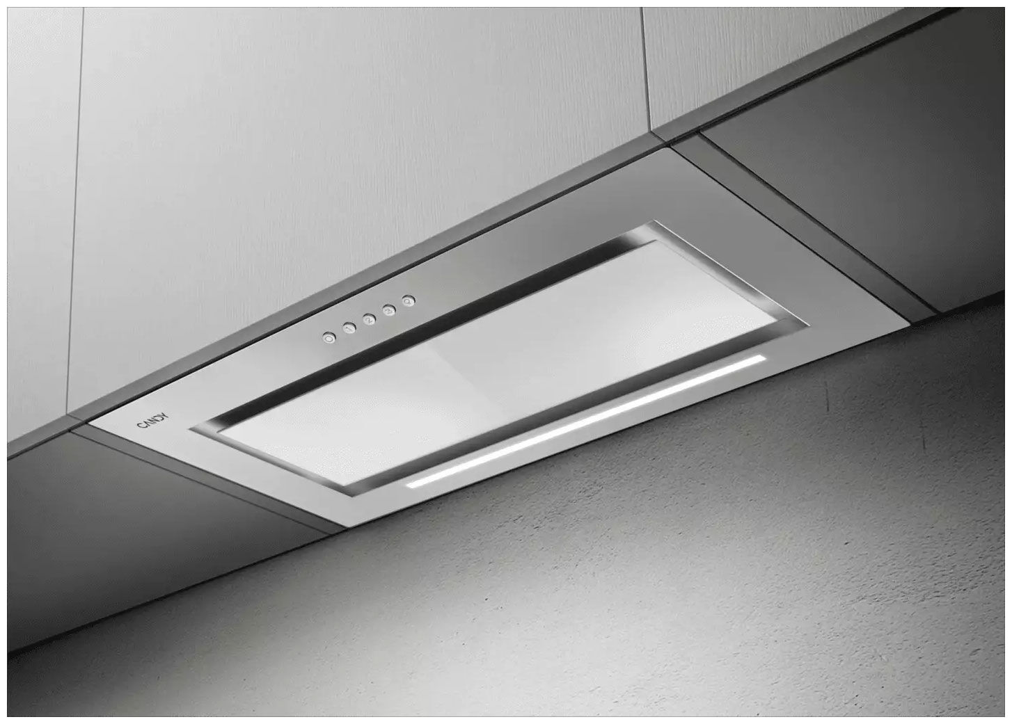 Полновстраиваемая вытяжка Candy CVXBI63MGWX – нержавеющая сталь со стеклом, производительность 600 м³/ч и тихая работа