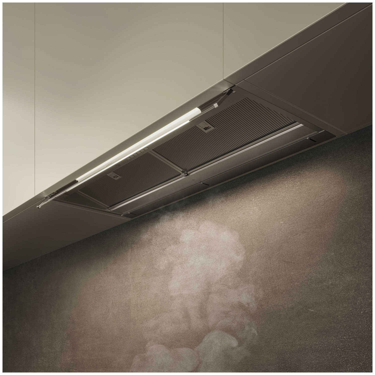 - Итальянский дизайн Fabrizio Crisà – полновстраиваемая вытяжка для интерьеров, где эстетика достигается отсутствием видимых технических элементов