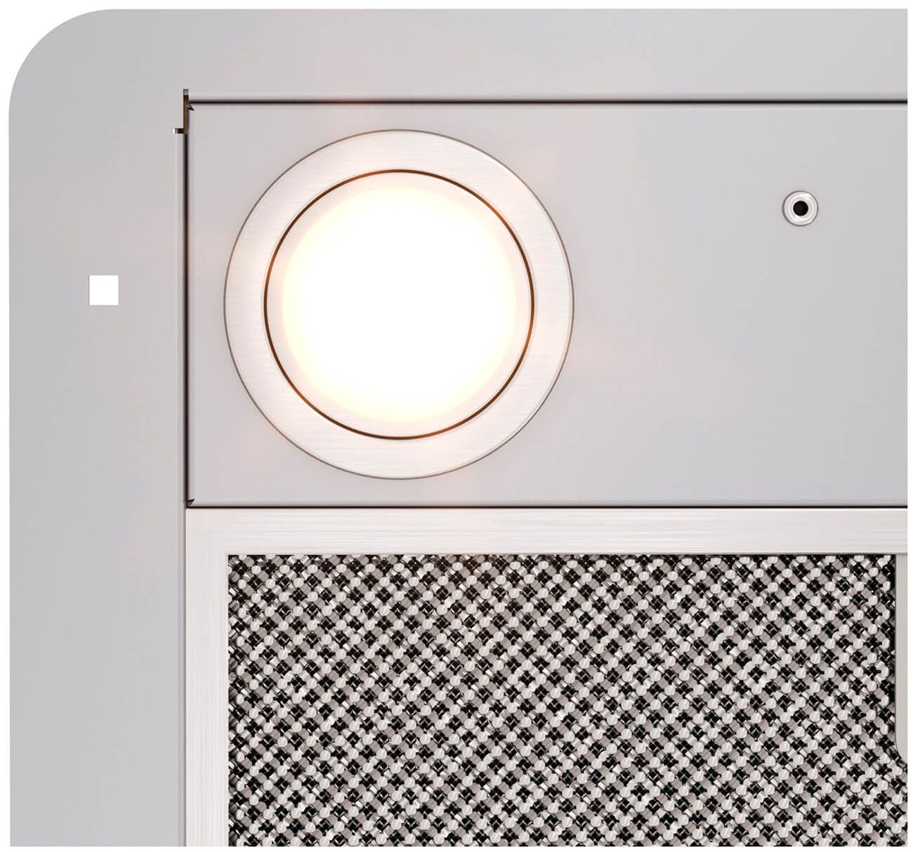Компактный встраиваемый дизайн – благодаря плоской нижней панели корпуса вытяжка полностью скрывается в шкафу, становясь незаметной и сохраняя эстетику кухонного гарнитура.