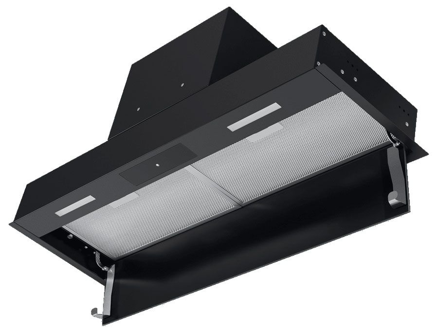 - Невидимая мощь – полностью скрытая установка позволяет сохранить целостность дизайна, а черный стеклянный фасад добавляет интерьеру стильную акцентную деталь.