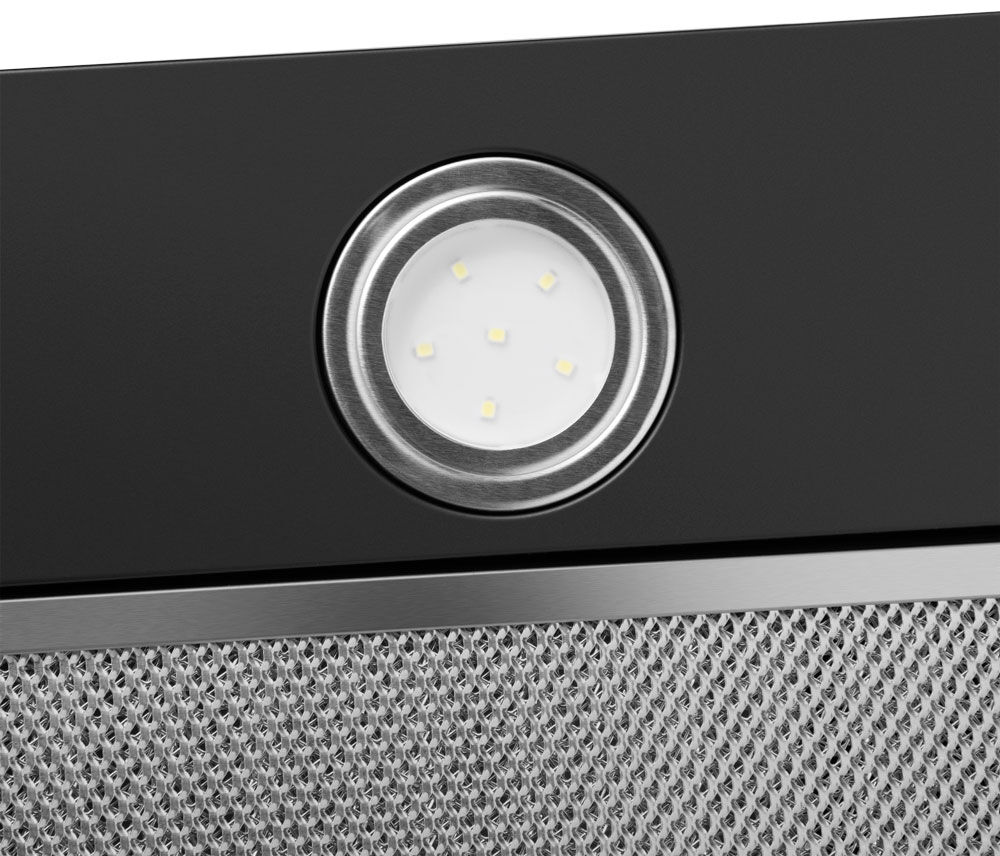 Полная интеграция в шкаф — абсолютная скрытность. После монтажа в навесной шкаф видимой остается лишь стильная черная вентиляционная панель, не нарушающая дизайн фасадов.