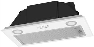 - Элегантный белый дизайн – стильная металлическая панель белого цвета придаёт вытяжке современный и свежий вид. Полностью встраиваемая конструкция делает её не просто функциональным устройством, а настоящим украшением вашей кухни.