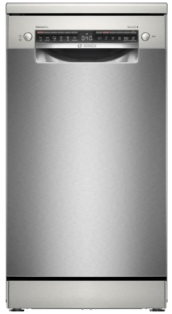 Узкая отдельностоящая посудомоечная машина Bosch SPS4HMI49E – это идеальное решение для небольших кухонь, где важен каждый сантиметр. Модель шириной всего 45 см, рассчитанная на 10 комплектов посуды, оснащена полной защитой AquaStop, 3 корзинами, поддержкой Wi-Fi (Home Connect) и исключительно тихой работой (44 дБ), предлагая максимальную функциональность в компактном корпусе.