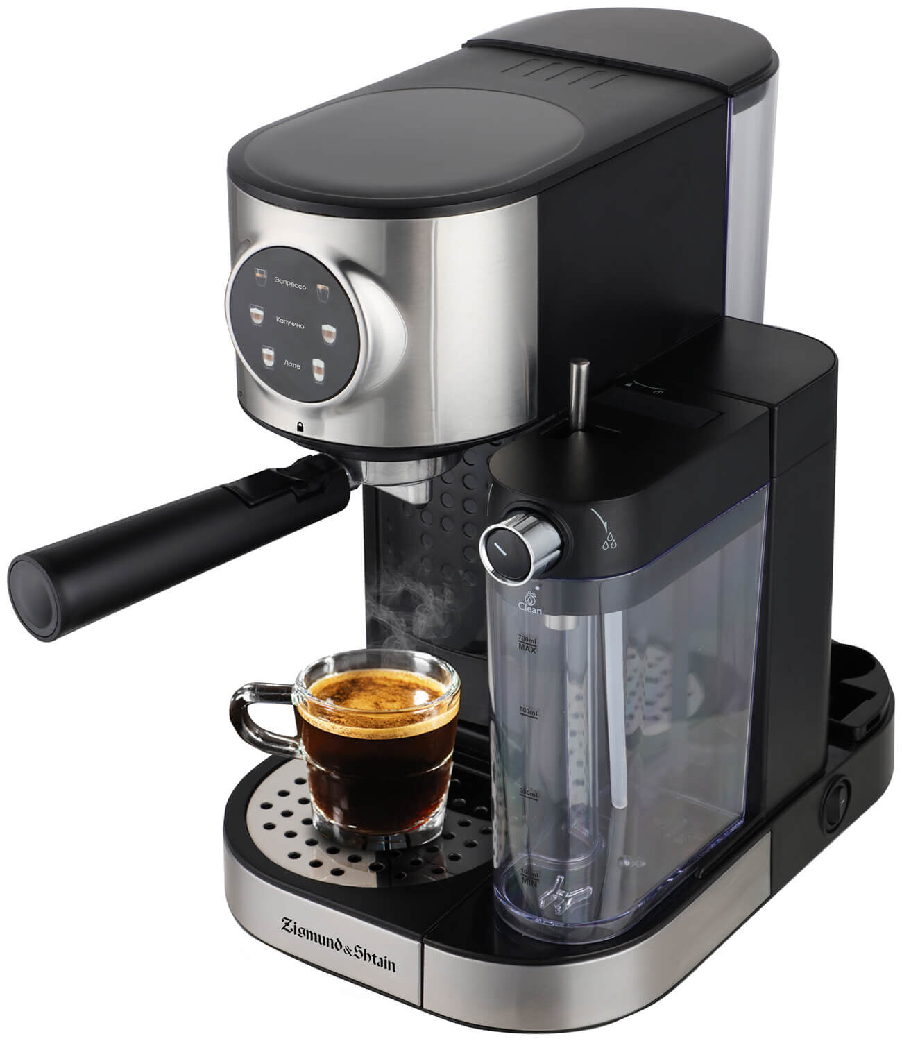 Рожковая кофеварка Zigmund & Shtain ZCM-890 Al caffè – мощность 1600 Вт и 15 бар с автоматическим капучинатором и резервуаром для молока