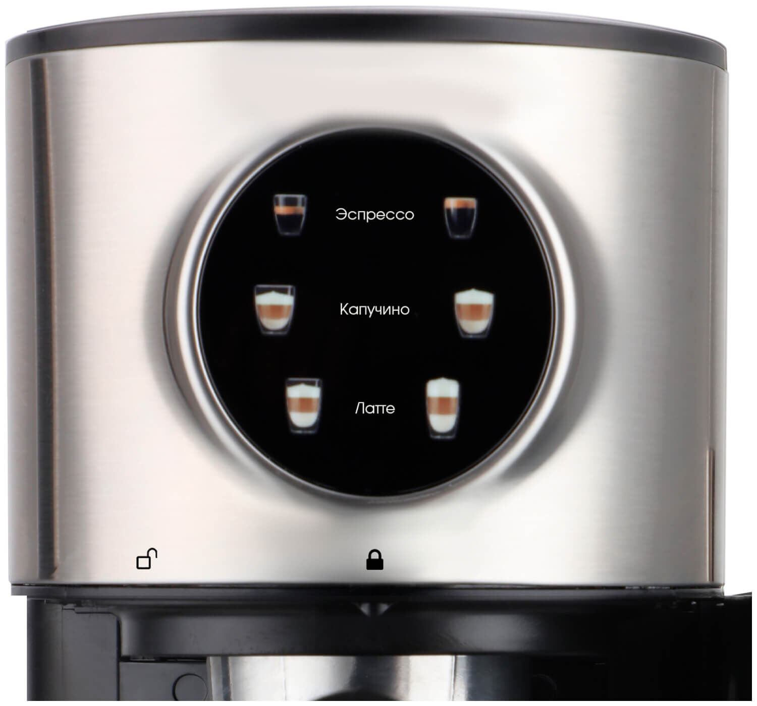 - Автоматическое приготовление эспрессо, капучино, латте – выбирайте напиток одним касанием, кофеварка сделает всё остальное.