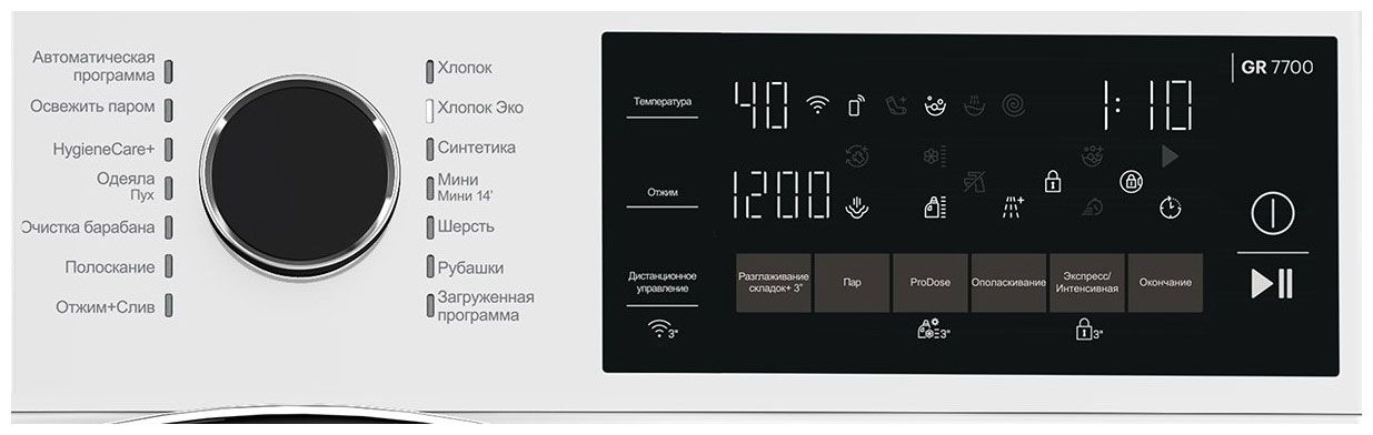 - Управление: электронное, цифровой дисплей