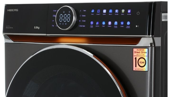 Стиральная машина Hiberg i-DDQ10-814 Sd – гигиеничная стирка 8 кг с УФ-стерилизацией и 10-летней гарантией на мотор