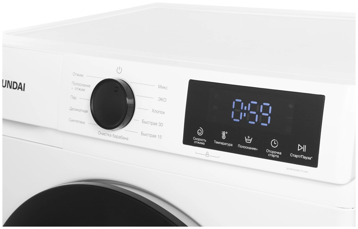 - Особенности: обработка паром, дозагрузка белья, быстрая стирка 15 мин