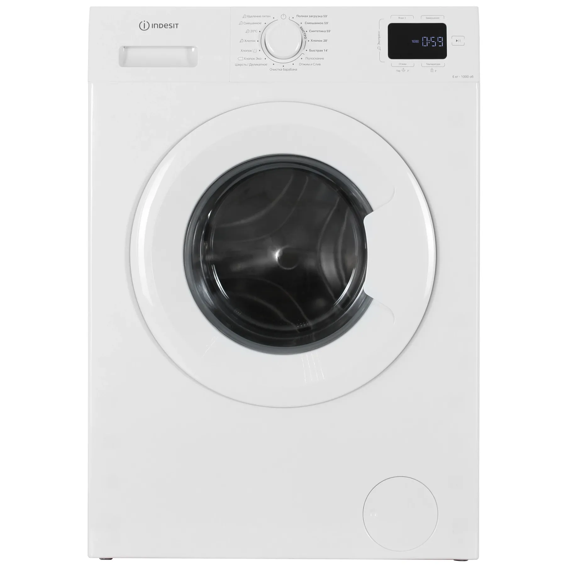 - Программа для полной загрузки 59' – позволяет качественно выстирать до 6 кг белья всего за 59 минут, экономя время.