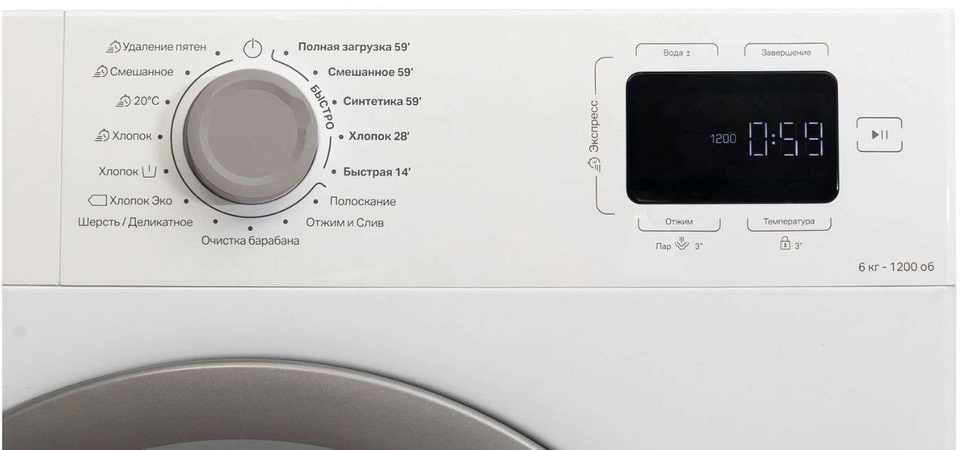- Цифровой дисплей – отображает время до окончания цикла, выбранную программу и другую информацию.