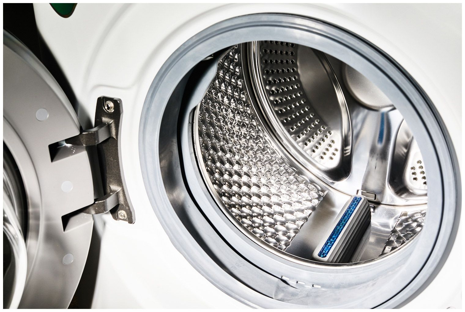 - Барабан Pebble Drum® из нержавеющей стали на 40 литров – инновационная рельефная поверхность обеспечивает максимально бережное отношение к деликатным тканям и улучшает качество стирки и полоскания даже при компактных размерах.