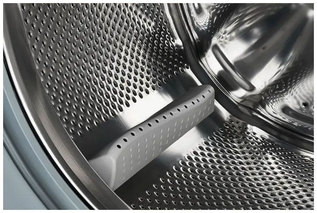 - Надежная конструкция — бак и барабан из нержавеющей стали устойчивы к коррозии и гарантируют длительный срок службы.