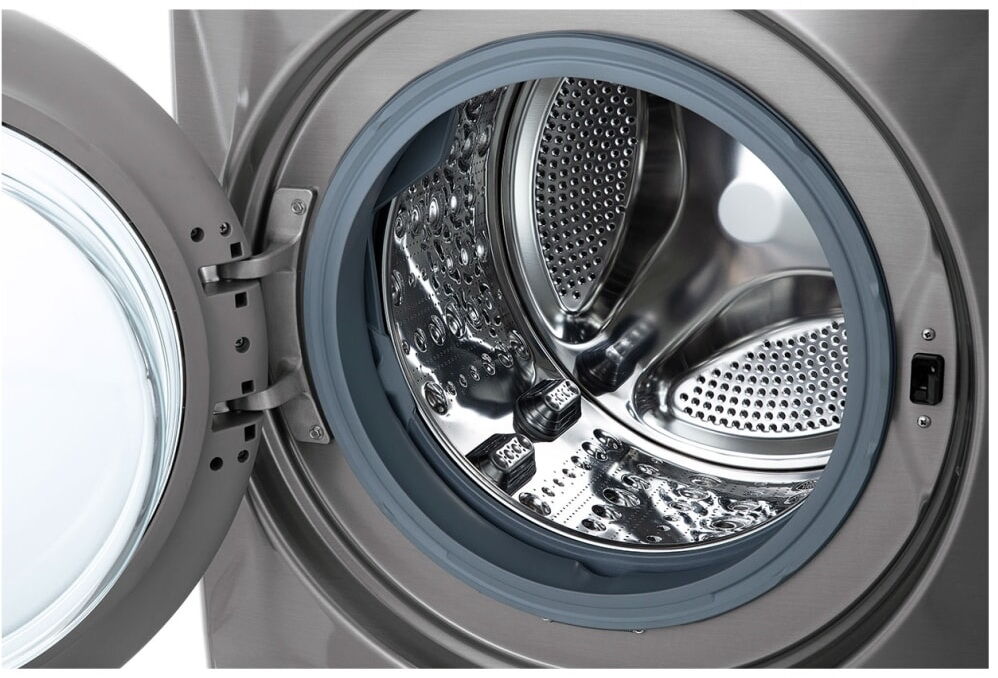 - Умное управление с Wi-Fi и LG ThinQ – встроенный Wi-Fi и приложение LG ThinQ позволяют управлять стиральной машиной удалённо, загружать специальные циклы стирки и получать уведомления о завершении работы.
