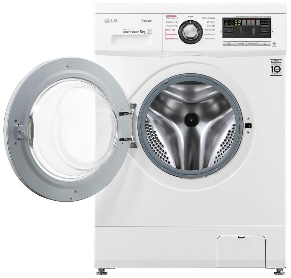 - Система прямого привода (Direct Drive) с инверторным мотором – мотор крепится напрямую к барабану, исключая использование легко изнашивающихся деталей (ремней и щеток). Это гарантирует высокую надёжность, долговечность, тихую работу и экономичность. На мотор предоставляется 10-летняя гарантия.