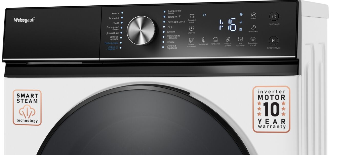 - Функция пара и 16 программ – гигиена и гибкость для любых задач.