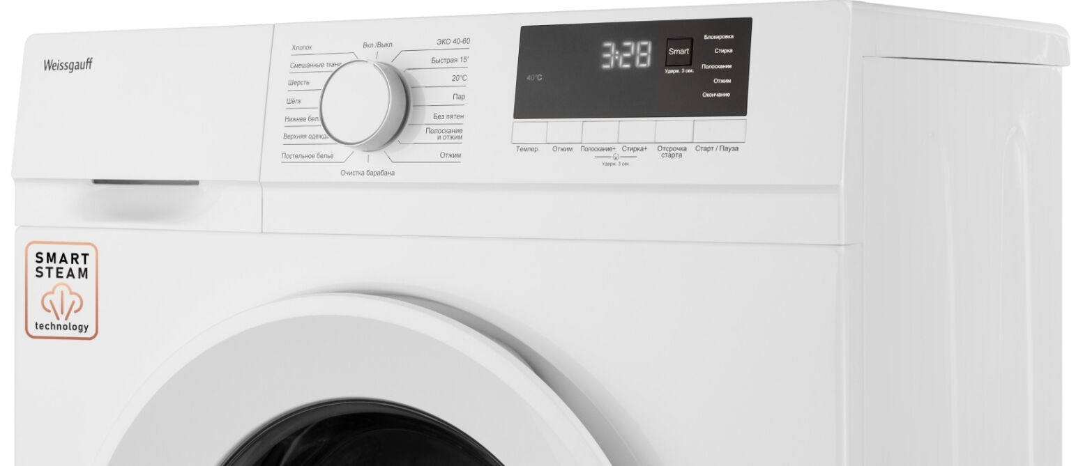 Отдельностоящая стиральная машина Weissgauff WM 46106 Steam – 6 кг, пар, Smart, класс A+ и узкая глубина 45 см