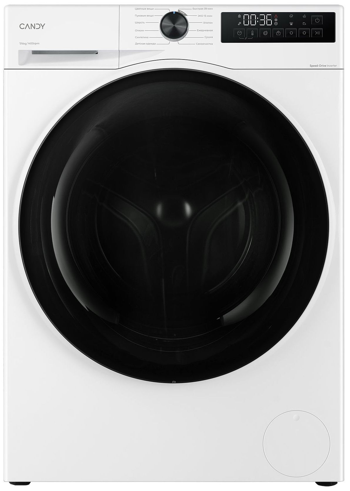 Полный цикл "стирка-сушка" – автоматическая сушка 4 кг после стирки 7 кг белья. 12 программ, включая специальные: «Детская одежда», «Пуховые вещи», «Шерсть» и «Быстрая стирка 39 мин».
