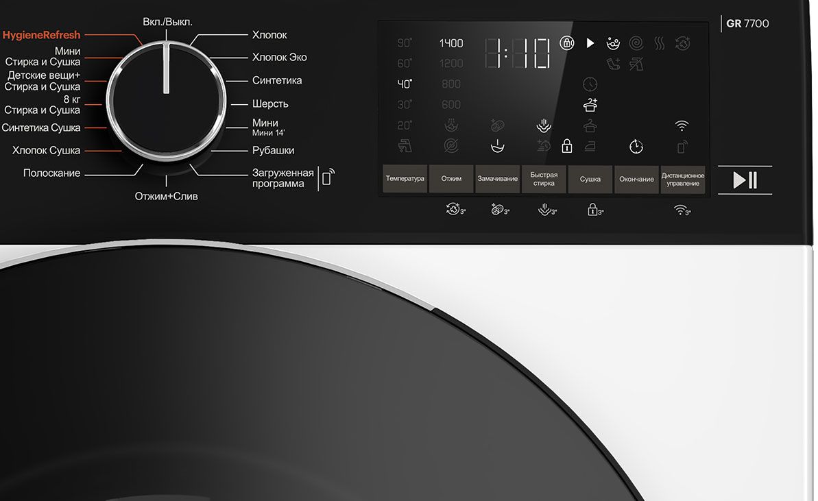 Программа Hygiene Refresh – освежает и дезодорирует белье с помощью паровой обработки, устраняя неприятные запахи.