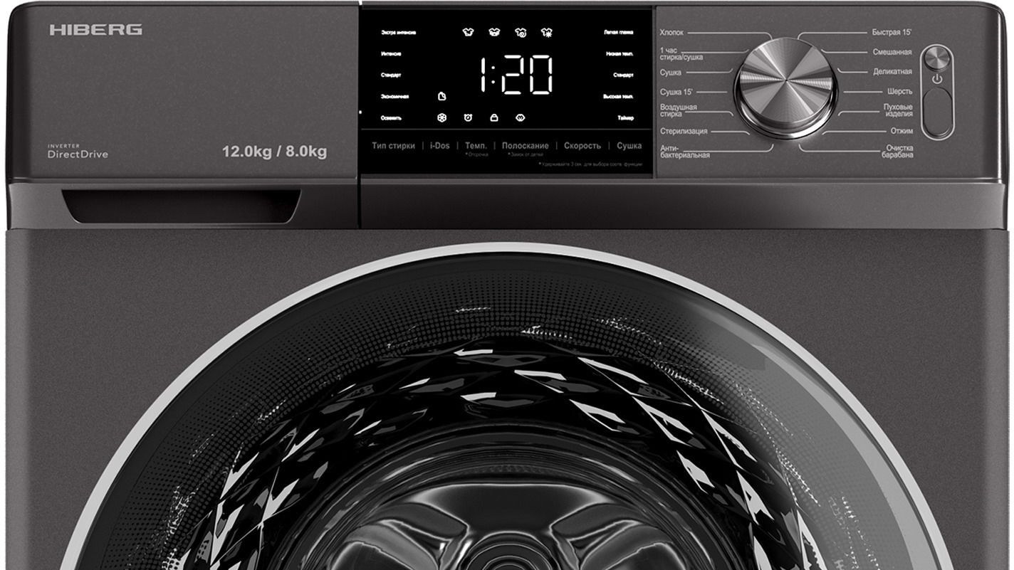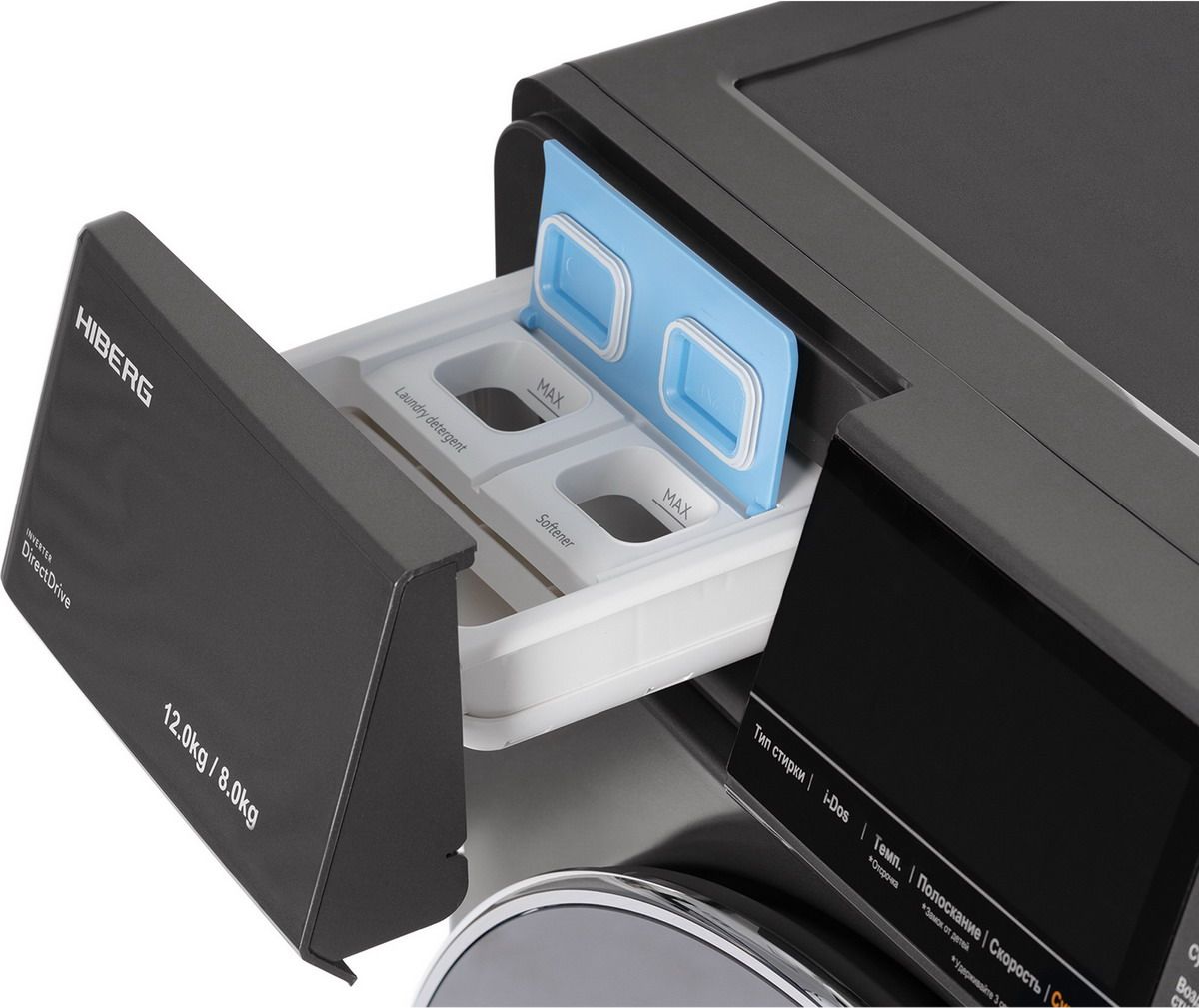 Стирально-сушильная машина Hiberg i-DDQ6A-12814 Sd – рекордная загрузка 12/8 кг с нано-защитой и автодозировкой