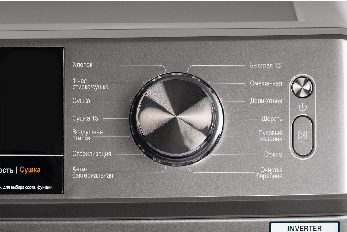 Интеллектуальные программы – 14 режимов, включая Стерилизацию, Антибактериальную стирку, Пуховые изделия, 1 час стирка/сушка и сушку за 15 минут.