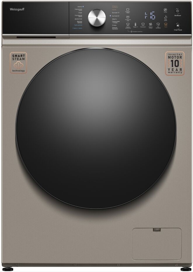 Отдельностоящая стиральная машина Weissgauff WMD 61211 D Inverter Steam Champagne – 11 кг с сушкой 7 кг, пар, инвертор и класс A+++