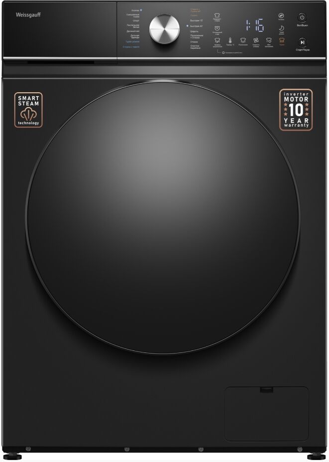 Отдельностоящая стиральная машина Weissgauff WMD 61211 D Inverter Steam Matt Black – 11 кг с сушкой 7 кг, пар, инвертор и класс A+++
