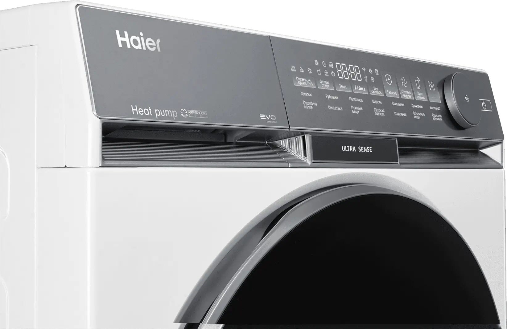 Сушильная машина Haier HD100-A2387U1 – премиальный тепловой насос, 4-слойный фильтр и управление через приложение EVO