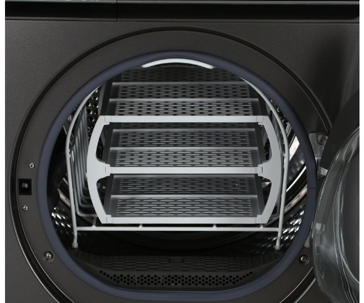 - Экономия энергии и бережный уход – тепловой насос класса A+ защищает ткани от высоких температур и деформации