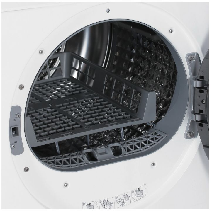 Удобство установки и использования – перенавешиваемая дверца, возможность установки в колонну со стиральной машиной, подсветка барабана, съемная полка для сушки в комплекте.