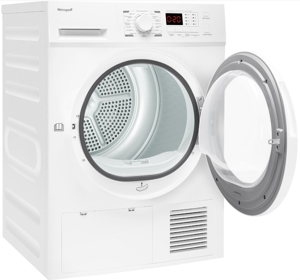 Отдельностоящая сушильная машина Weissgauff WD 6128 D – 8 кг, конденсационная сушка, вместительный барабан 105 л и электронное управление