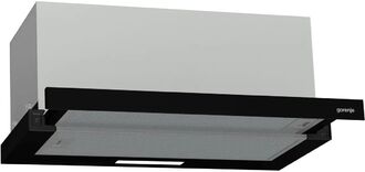 Телескопическая вытяжка Gorenje TH60E6XB – встраиваемая модель 60 см с чёрным стеклом и тремя скоростями
