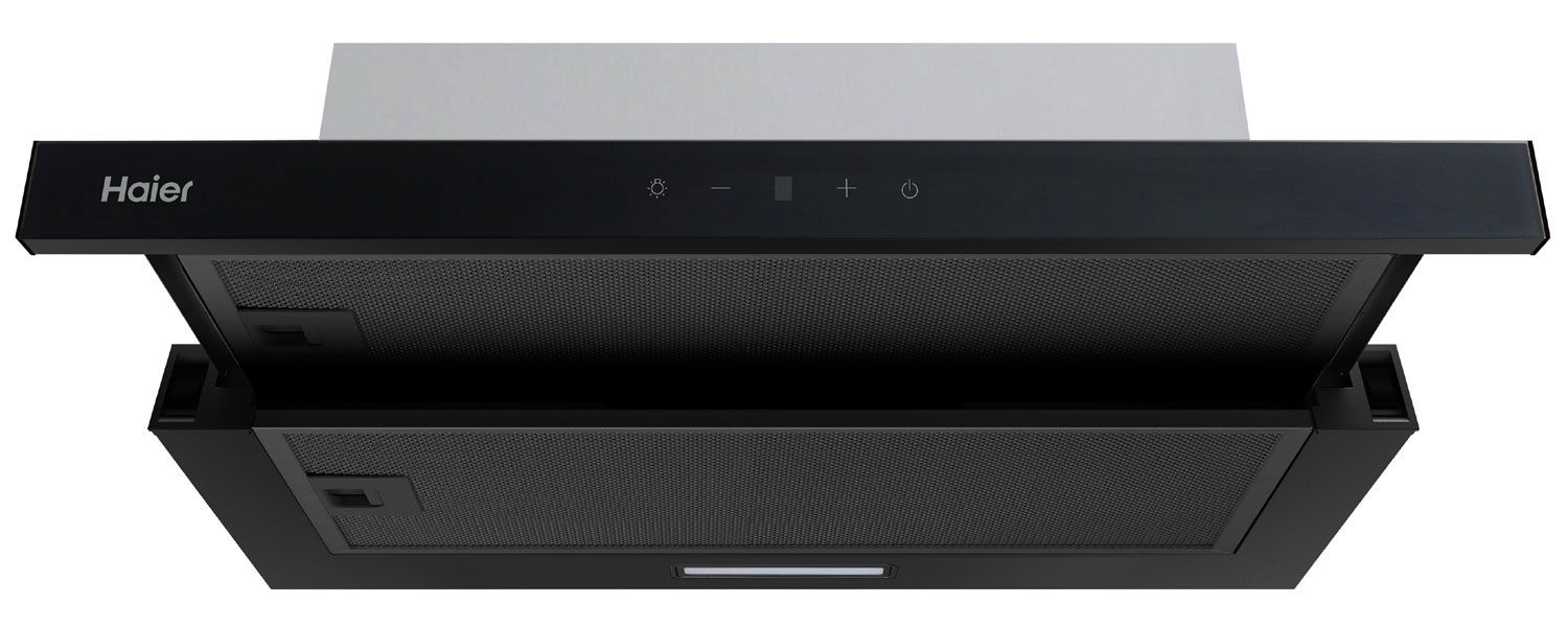 Телескопическая вытяжка Haier HVX-T662BB сочетает лаконичный дизайн и эффективную работу. Модель в черном цвете выполнена из стекла и металла, предназначена для встраивания в кухонный шкаф и оснащена выдвижной панелью.